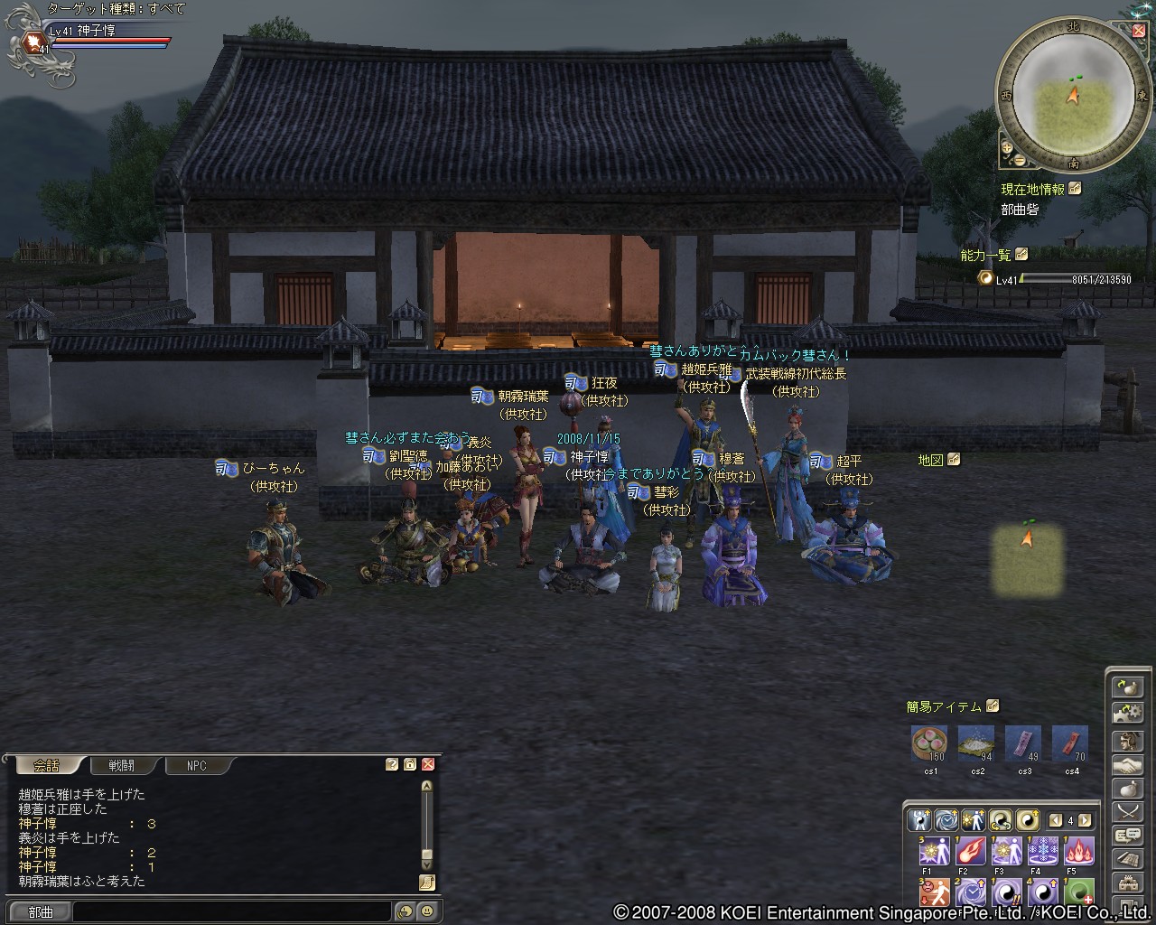 三国志Onlineを再開して初めて入った部曲のメンバーさんが今日で抜けるコトになりました。