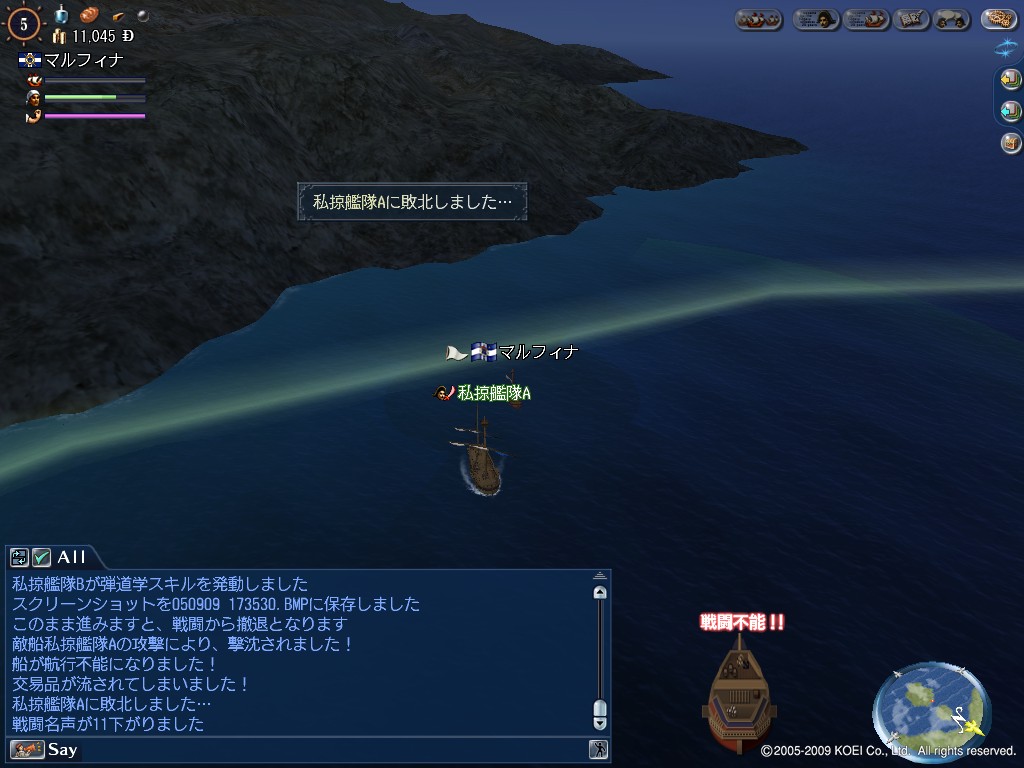 小型キャラベルの私掠艦隊って人たちに襲われちゃったのー(TдT)
