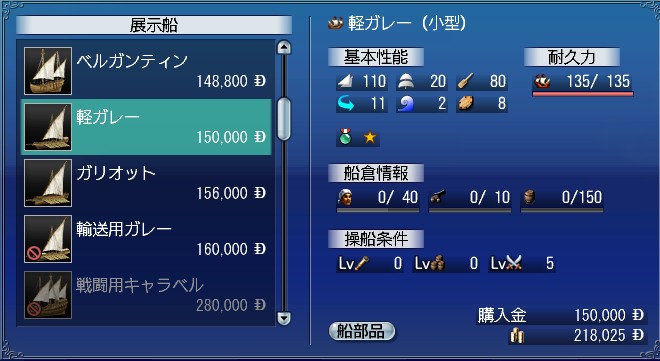 軽ガレーってお船だとマルフィナのレベルにぴったりなのねー^^