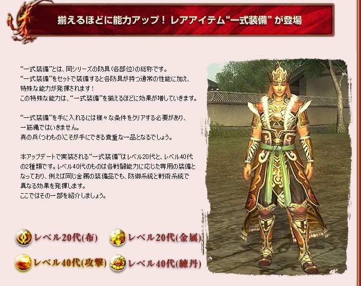 久々に三国志Onlineの公式サイト覗いてみたら、今度の大アップデートの中に、装備のアップデートが含まれていて心をぐっ!と鷲づかみにされた神子惇です。
