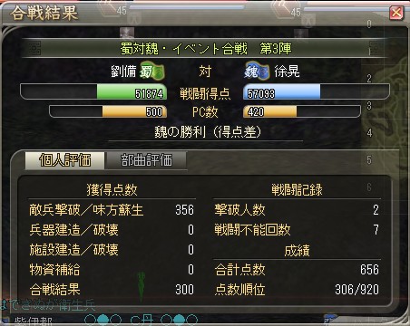 最終戦に望む気持ちが蜀の方が勝っていたようです・・・。