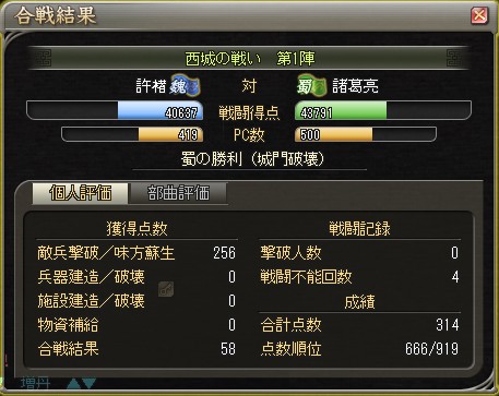 でも、やはり蜀の勢いはここでも止められず、城門破壊で終了。