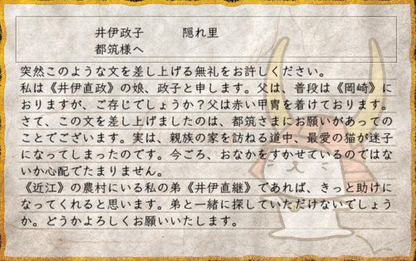 でも、イベントを進めると戦の時みなが背につける旗?あれがひこにゃんになるっぽいし・・・・。
